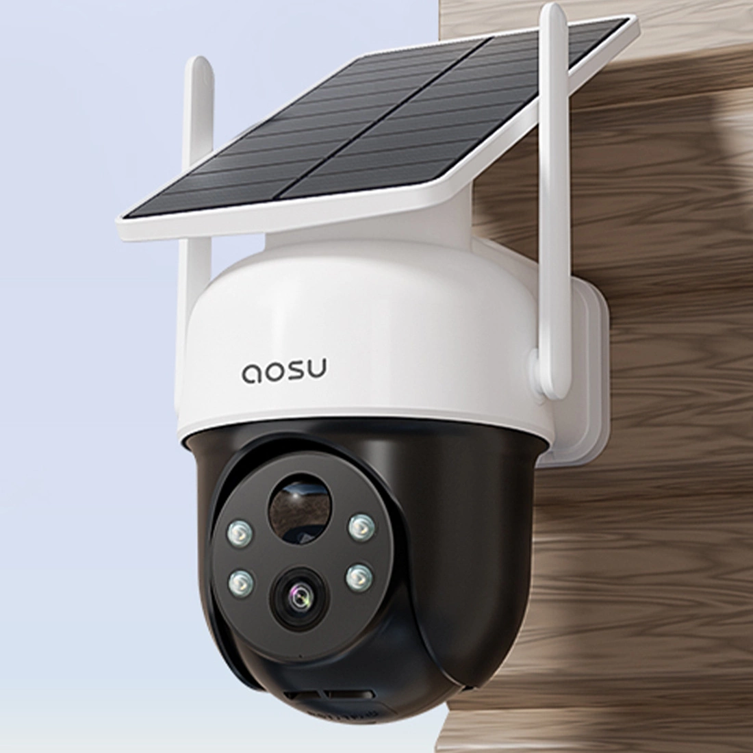 • Zestaw 4 kamer zasilanych panelami słonecznymi Aosu SL-C7P z magazynem pamięci 32 GB. Zaawansowany kolorowy tryb nocny. Kąt widzenia 166 stopni dla każdej z kamer. Współpracuje z aplikacjami Aosu, Alexa i Google Assistant.