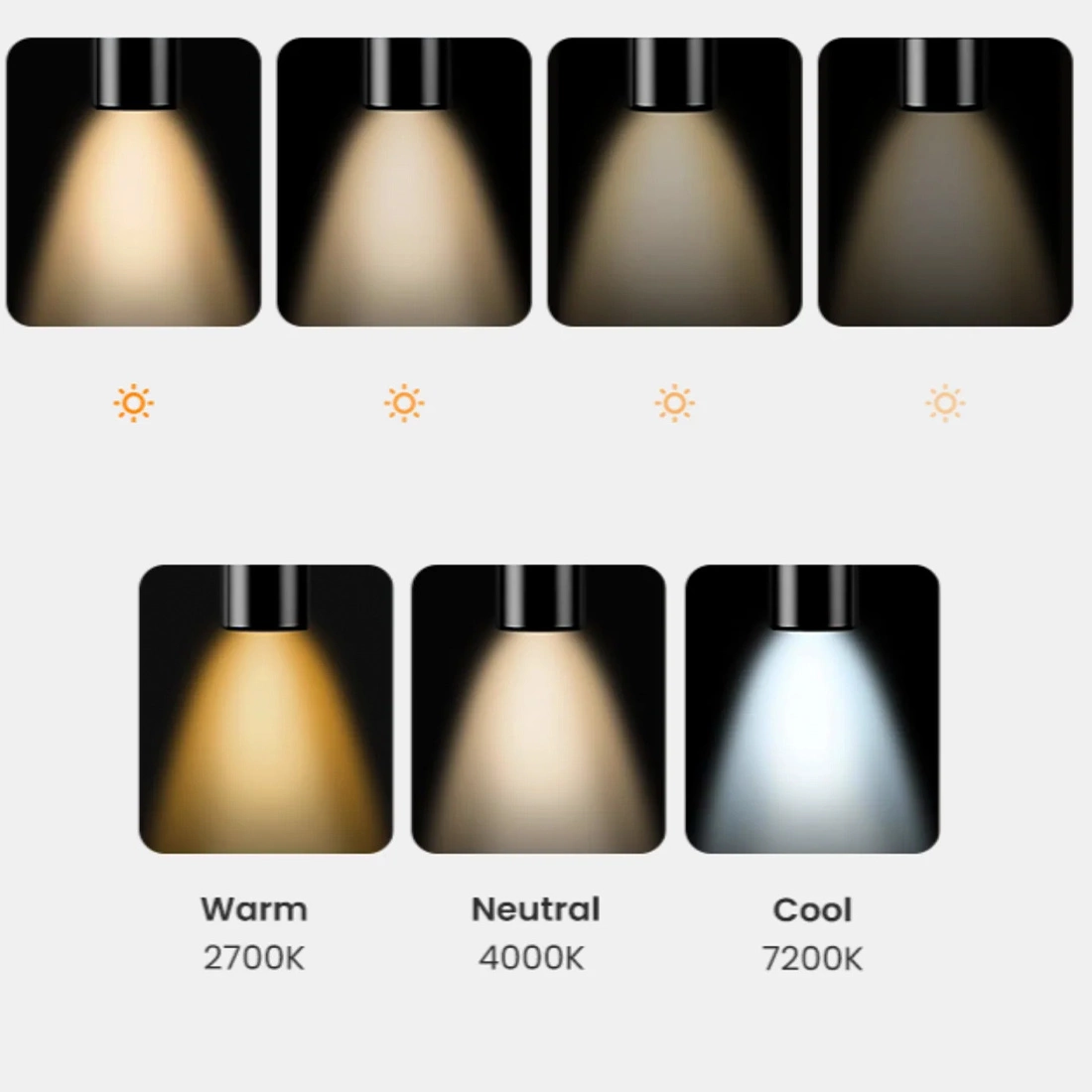 Ciepłe 2700 K ułatwia wyciszenie przed snem, neutralne 4000 K dobrze sprawdza się przy codziennym czytaniu, a chłodne 7200 K daje najlepszą widoczność podczas pracy czy szybkich notatek. Przełączasz je długim przytrzymaniem przycisku.