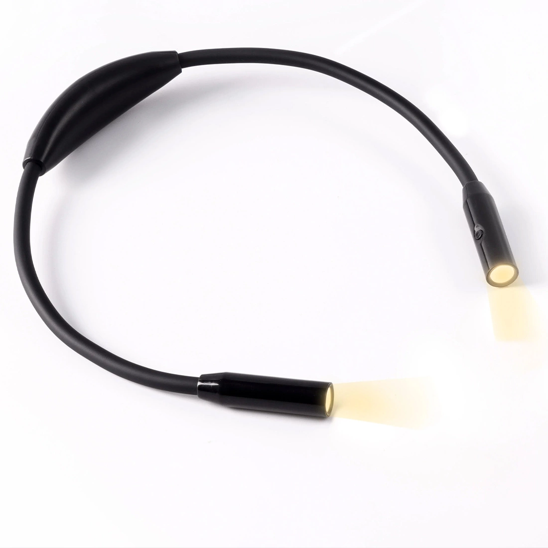 Konstrukcja lampki sprawia, że po założeniu na szyję światło pada zawsze tam, gdzie skierujesz wzrok. To wygodniejsze niż zwykłe lampki biurkowe, bo nie musisz ich ustawiać ani trzymać w ręku. Ramiona możesz dowolnie wygiąć, dzięki czemu światło trafia dokładnie na tekst, bez oświetlania całego pomieszczenia.