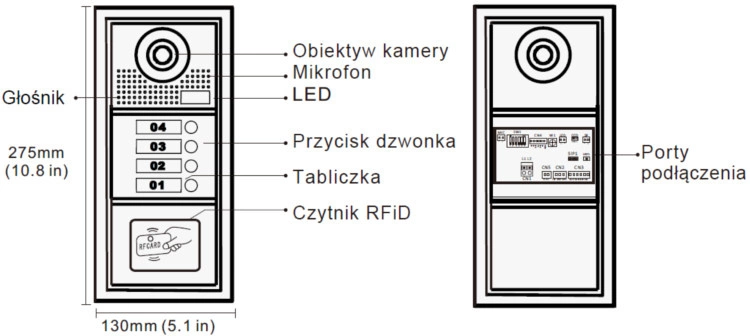 Zestaw wideodomofon czterorodzinny z monitorami dotykowymi 4,3" Spacetronik DiO SPD-DS914 NFC + 4x SPD-M434