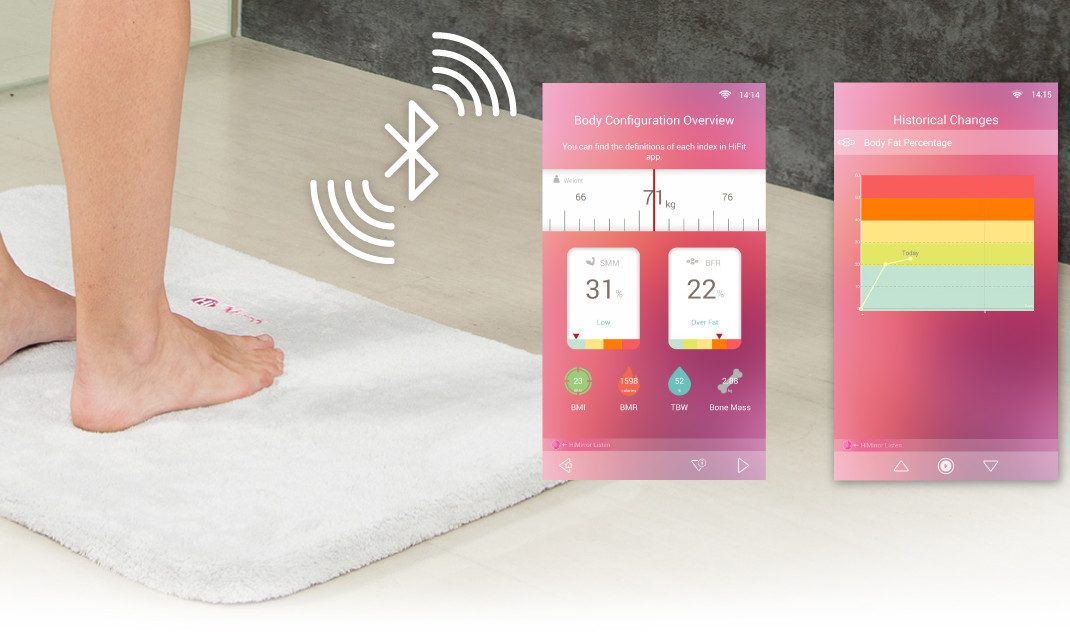 *Smart Body Scale jest akcesorium HiMirror i musi być używany w połączeniu z HiMirror i jego kontem użytkownika.