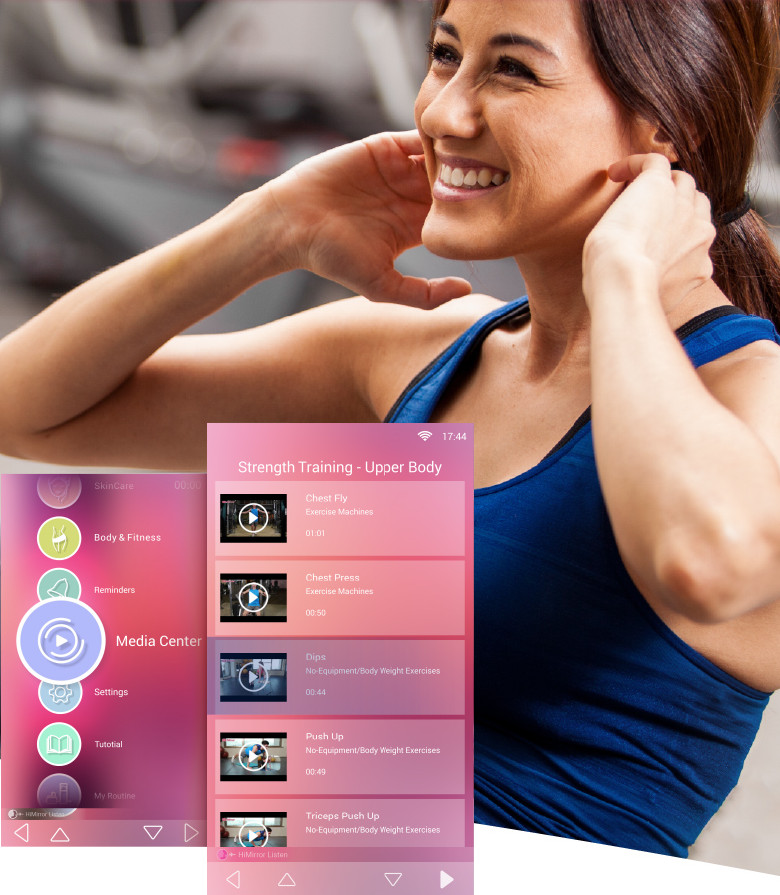 HiMirror wyposażony jest w filmy fitness dla różnych typów ćwiczeń, części ciała i sprzętu. Spersonalizuj swoje ćwiczenia, wybierając te, które lubisz!