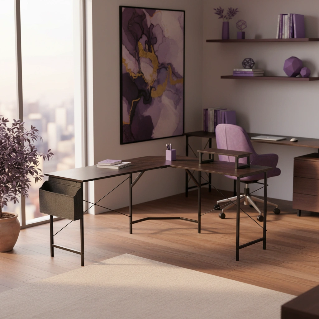 Narożnikowy kształt — Biurko w kształcie litey "L" zapewnia Ci dużą przestrzeń roboczą przy, ktorej mogą naraz pracować nawet 2 osoby.