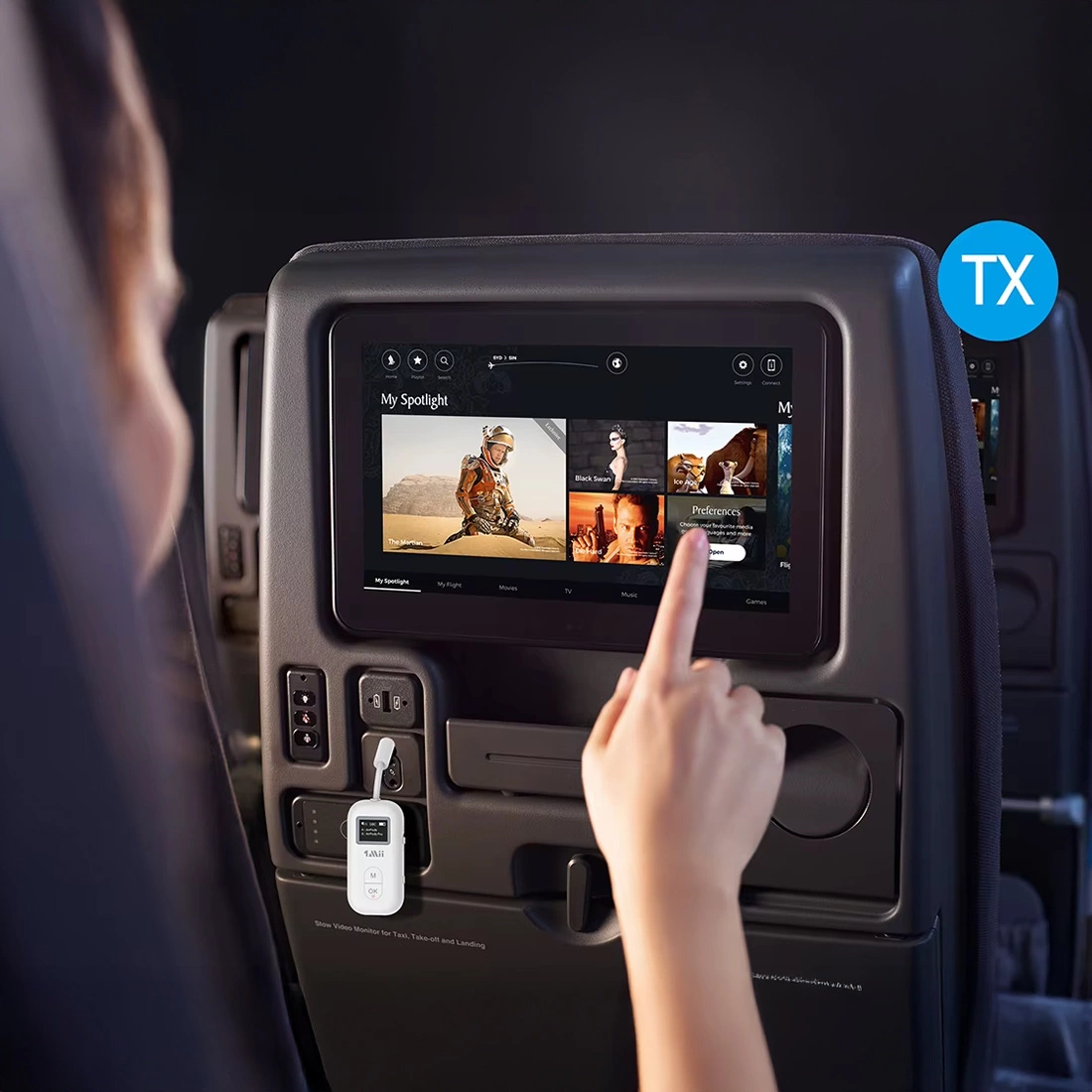 W trybie TX (transmitera) 1Mii SafeFly Pro wysyła dźwięk z urządzeń pozbawionych Bluetooth – takich jak telewizor, komputer, konsola, czy system rozrywki w samolocie – prosto do Twoich bezprzewodowych słuchawek lub głośników. Oglądaj filmy, graj lub słuchaj muzyki bez ograniczeń kabli, zachowując pełną swobodę ruchu i komfort.