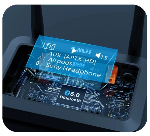 Wyposażony w najnowszy układ Bluetooth 5.0, odbieraj dowolną muzykę bezstratnie i bezprzewodowo. Proste przełączanie między kodekami.
