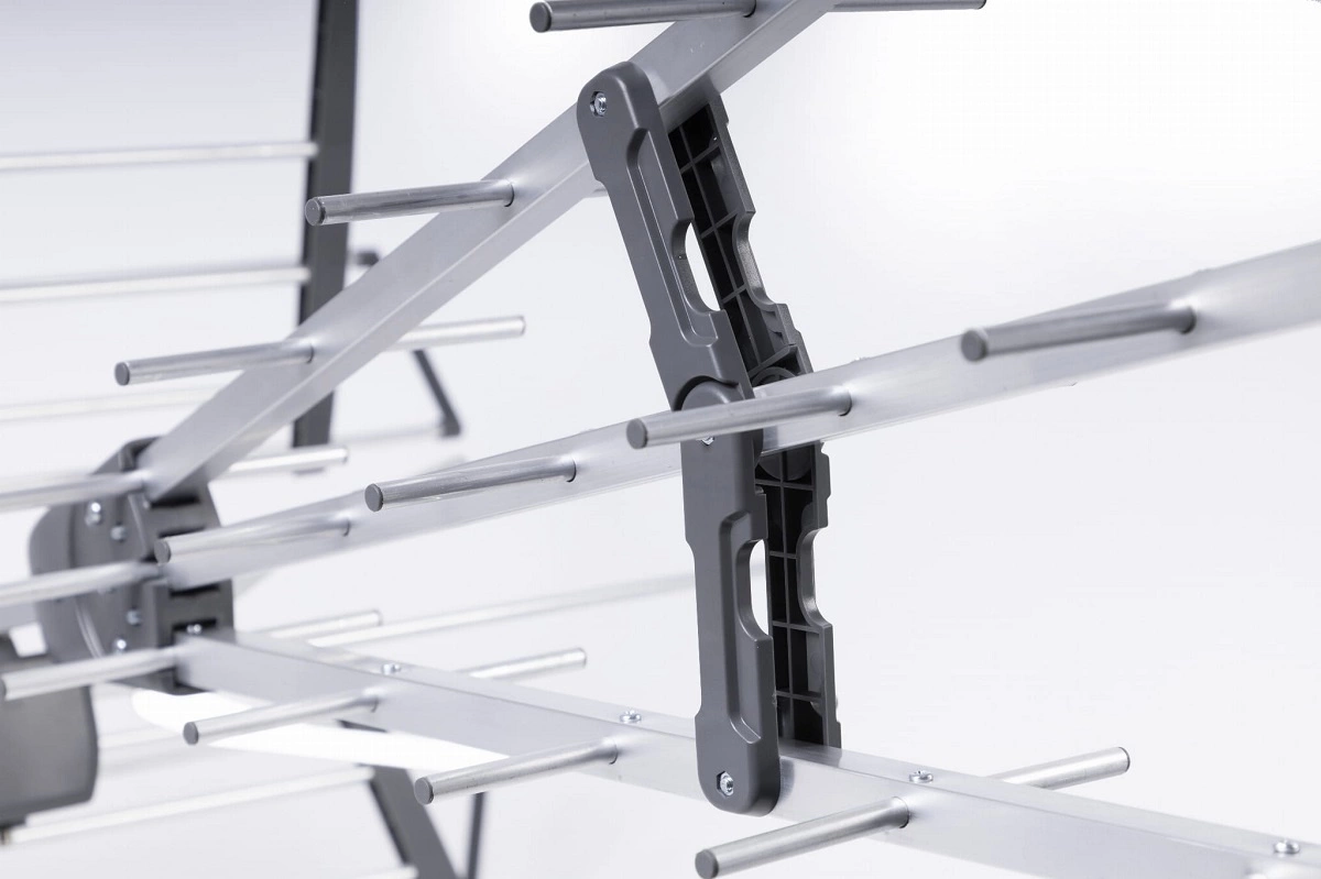 Antena kierunkowa przeznaczona jest do odbioru sygnału telewizyjnego, cyfrowej telewizji naziemnej w paśmie VHF i UHF, oraz sygnału analogowego w jakości Full HD, Ultra HD i 3D. Antena cechuje się zwiększoną odpornością na różne czynniki atmosferyczne, a lekka i wytrzymała konstrukcja nie wymaga użycia narzędzi przy montażu.Najwyższej jakości, profesjonalna antena zewnętrzna do telewizji DVB-T i Analogowej. Dzięki swym doskonałym parametrom technicznym, antena doskonale radzi sobie nawet w skrajnie trudnych warunkach. Montaż anteny jest niezwykle prosty i nie wymagający żadnych specjalistycznych narzędzi. Każdy użytkownik jest w stanie samodzielnie ją zamontować. Antena wykonana została z aluminium oraz stali ocynkowanej galwanicznie, co gwarantuje długą żywotność, eliminuje korozję i zabezpiecza antenę przed negatywnym działaniem warunków atmosferycznych.