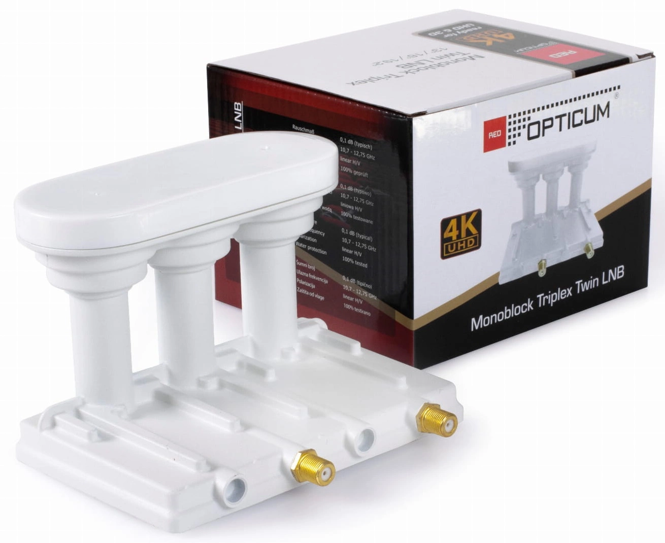 Konwerter monoblock TRIPLEX SINGLE 3 stopnie przeznaczony do odbioru programów z trzech satelitów oddalonych od siebie o 3 stopnie, np. system ASTRA.