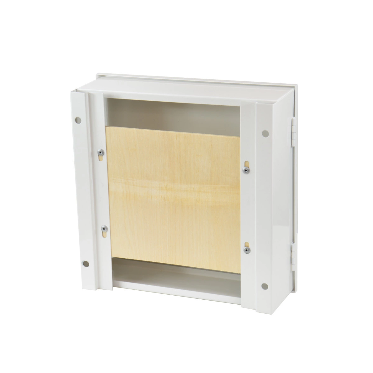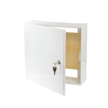 Szafka wykonana bez widocznych spawów (gładki front i boki szafki). Do zestawu dołączamy płytę montażową - solidny panel wykonany z wodoodpornej sklejki o grubości 6 mm. Montaż dodatkowej ścianki ze sklejki, zdecydowanie ułatwia dowolne zagospodarowanie wewnętrznej przestrzeni obudowy i zapewnia wygodną instalację urządzeń.