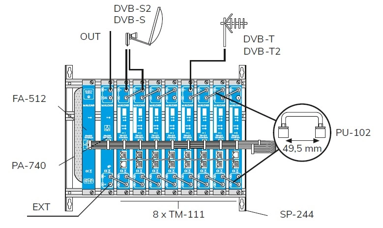 Zasilacz impulsowy dla transmodulatorów z seri Alcad 912-TM himalaya, który umożliwia instalację szerokopasmowego wzmacniacza PA-740 i modułów TM-101 oraz TM-111 na ramie nośnej.
