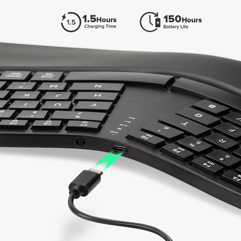 Dzięki wbudowanemu akumulatorowi litowo-jonowemu o pojemności 500mAh, klawiatura może pracować nawet do 150 godzin po pełnym naładowaniu. Szybkie ładowanie za pomocą portu USB-C trwa jedynie 1,5 godziny, co sprawia, że urządzenie jest zawsze gotowe do pracy.