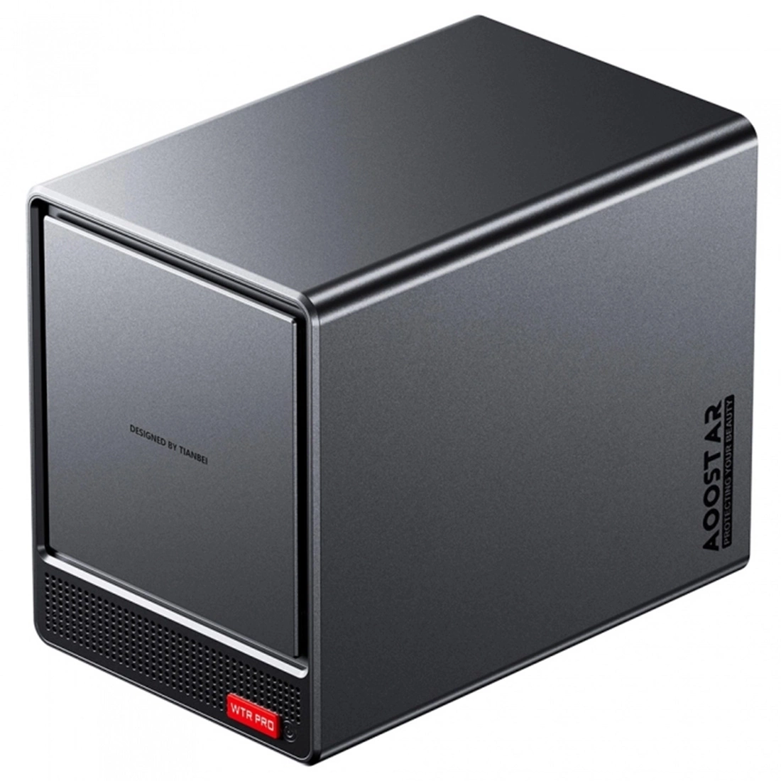 Obudowa o wymiarach 22,8 × 15 × 18,5 cm łączy kompaktowość mini PC z funkcjonalnością 4-zatokowego NAS-a. Solidna konstrukcja z metalu i tworzywa zapewnia trwałość, a wewnętrzny układ chłodzenia utrzymuje niskie temperatury nawet podczas pracy non stop. Zasilacz 120 W w zestawie gwarantuje stabilne zasilanie wszystkich dysków i modułów rozszerzeń.