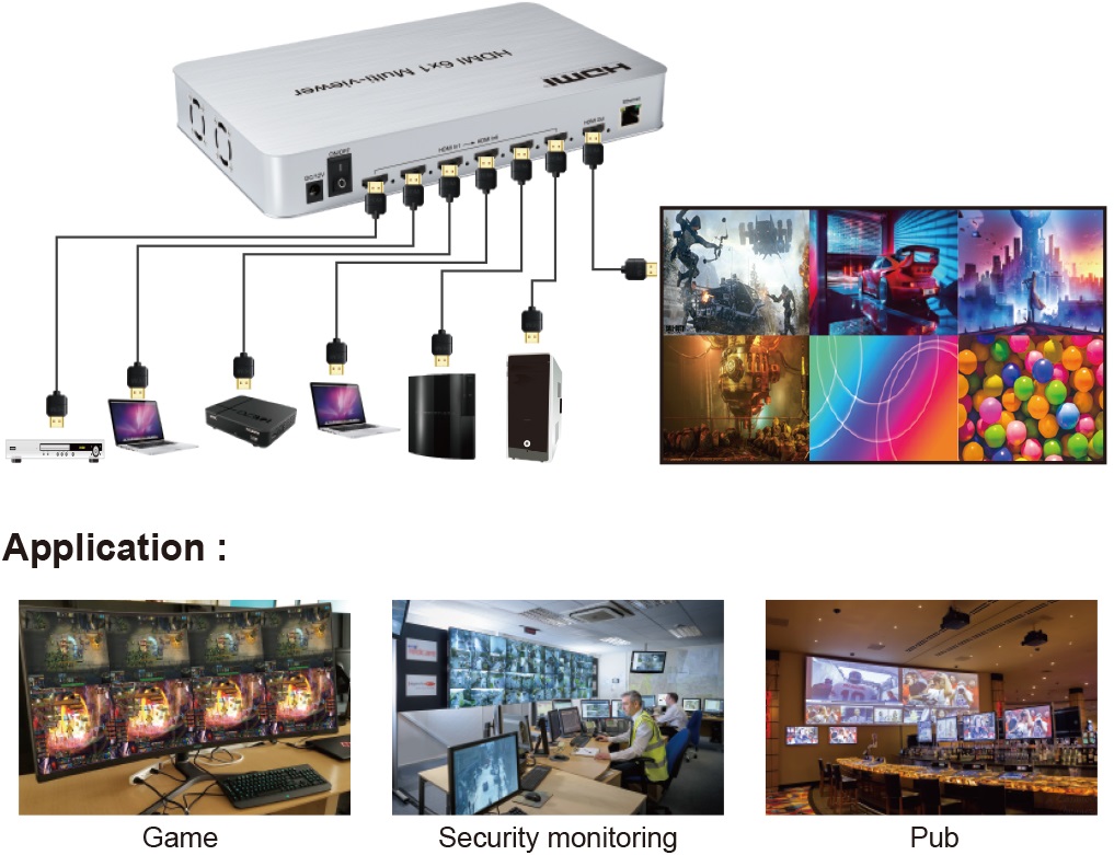 Multi-viewer HDMI 6x1 to produkt o wysokiej wydajności z sześcioma segmentacjami ekranu i płynnym przełączaniem wyjściowym.