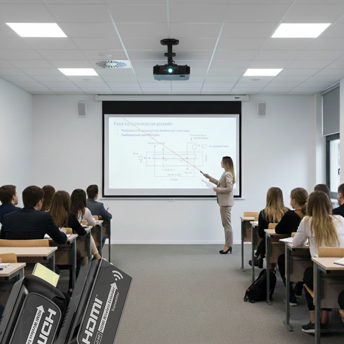 Takie rozwiązanie idealnie sprawdza się podczas spotkań biznesowych, warsztatów, zajęć szkolnych oraz w domu, gdy nie chcesz prowadzić kabli przez całe pomieszczenie. Niskie opóźnienie transmisji gwarantuje komfort przy wyświetlaniu filmów, prezentacji i multimediów.