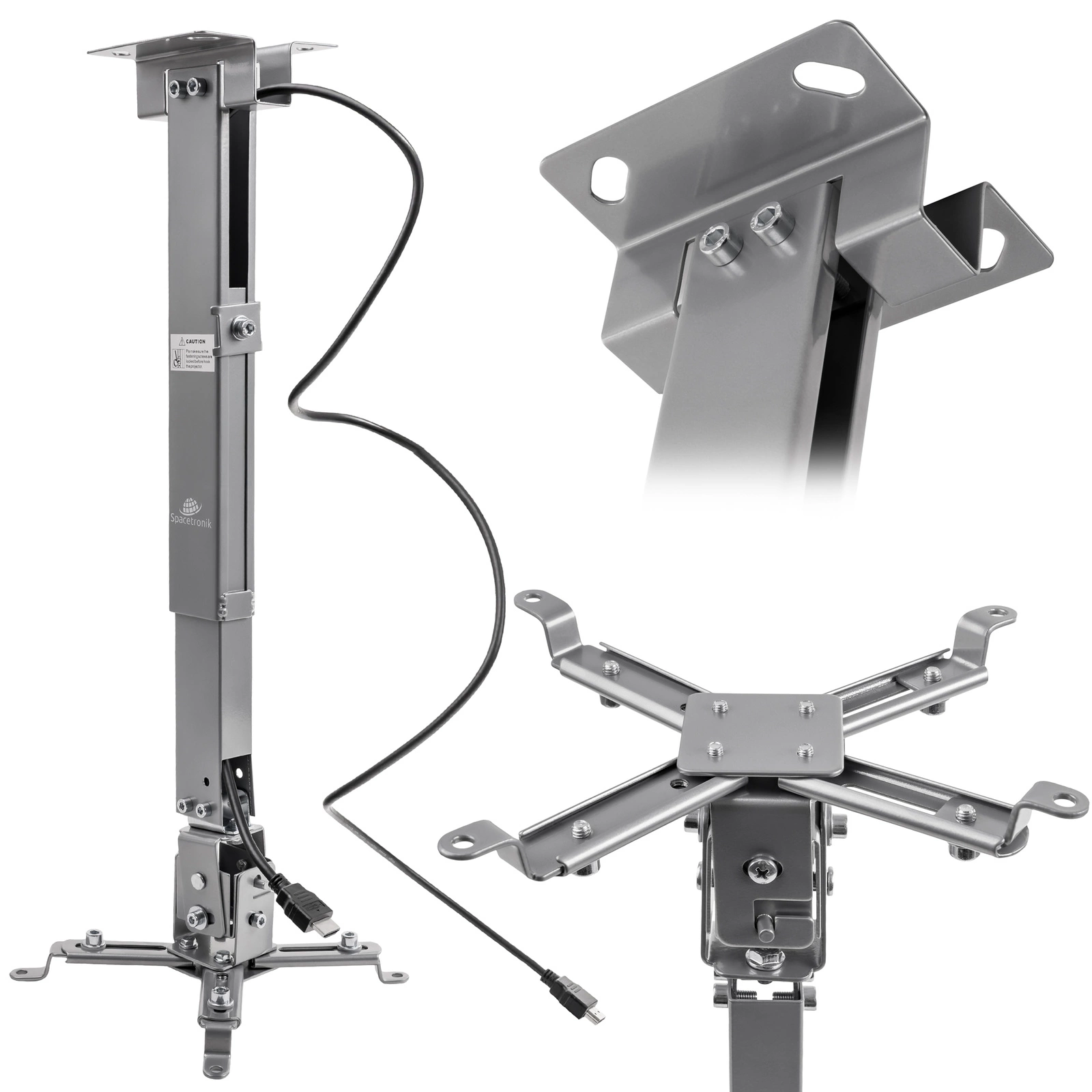 Uchwyt sufitowy do projektora SPA-P01S został wykonany z wysokiej jakości stali w kolorze srebrnym. Dzięki temu wieszak na rzutnik jest bardzo wytrzymały i ma maksymalny udźwig do 20 kilogramów. Natomiast 4 montażowe nóżki dbają o to, by produkt był dobrze przymocowany i by pewnie trzymał się ściany lub sufitu.