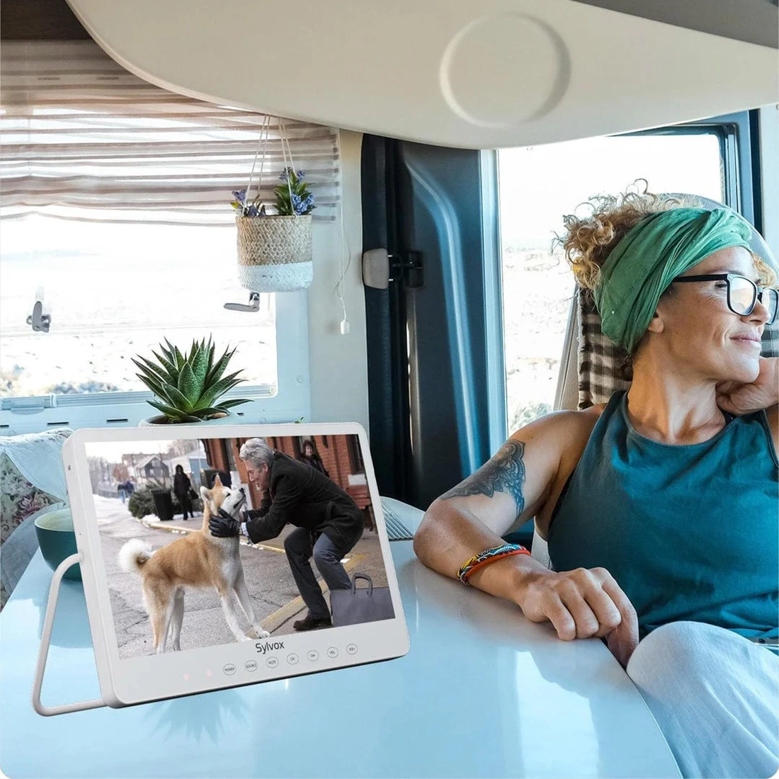 Sylvox Smart 15.6" to przenośny telewizor stworzony z myślą o miejscach, gdzie klasyczny sprzęt nie daje rady. Dzięki niewielkim wymiarom, niskiej wadze 2,2 kg i regulowanemu uchwytowi możesz postawić go tam, gdzie akurat potrzebujesz – na blacie w kuchni, na tarasie, w ogrodzie czy podczas wypoczynku w kamperze. To idealne rozwiązanie, gdy chcesz mieć swoje filmy, seriale i programy zawsze w zasięgu ręki, niezależnie od miejsca i pogody.