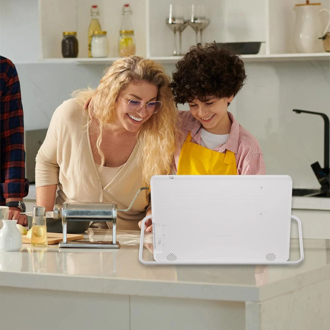 Wbudowany akumulator o pojemności 10 000 mAh pozwala oglądać ulubione filmy i seriale nawet przez 6 godzin bez podłączania zasilacza. To idealne rozwiązanie na biwak, na działkę, do kampera lub jako dodatkowy ekran w domu. Koniec z kablami i szukaniem gniazdka – masz pełną swobodę oglądania tam, gdzie chcesz.