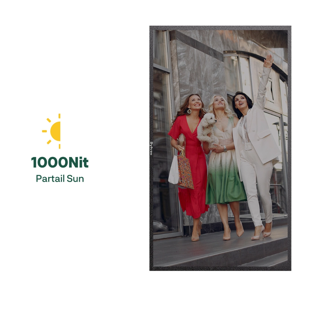 Ten ekran został stworzony do miejsc, gdzie treść musi być widoczna zawsze. Jasność na poziomie 1000 nitów zapewnia pełną czytelność nawet w południe, kiedy klasyczne telewizory są już niewidoczne. Dzięki temu masz pewność, że reklama, oferta lub komunikat pozostaną widoczne o każdej porze dnia, także w zewnętrznych instalacjach komercyjnych.