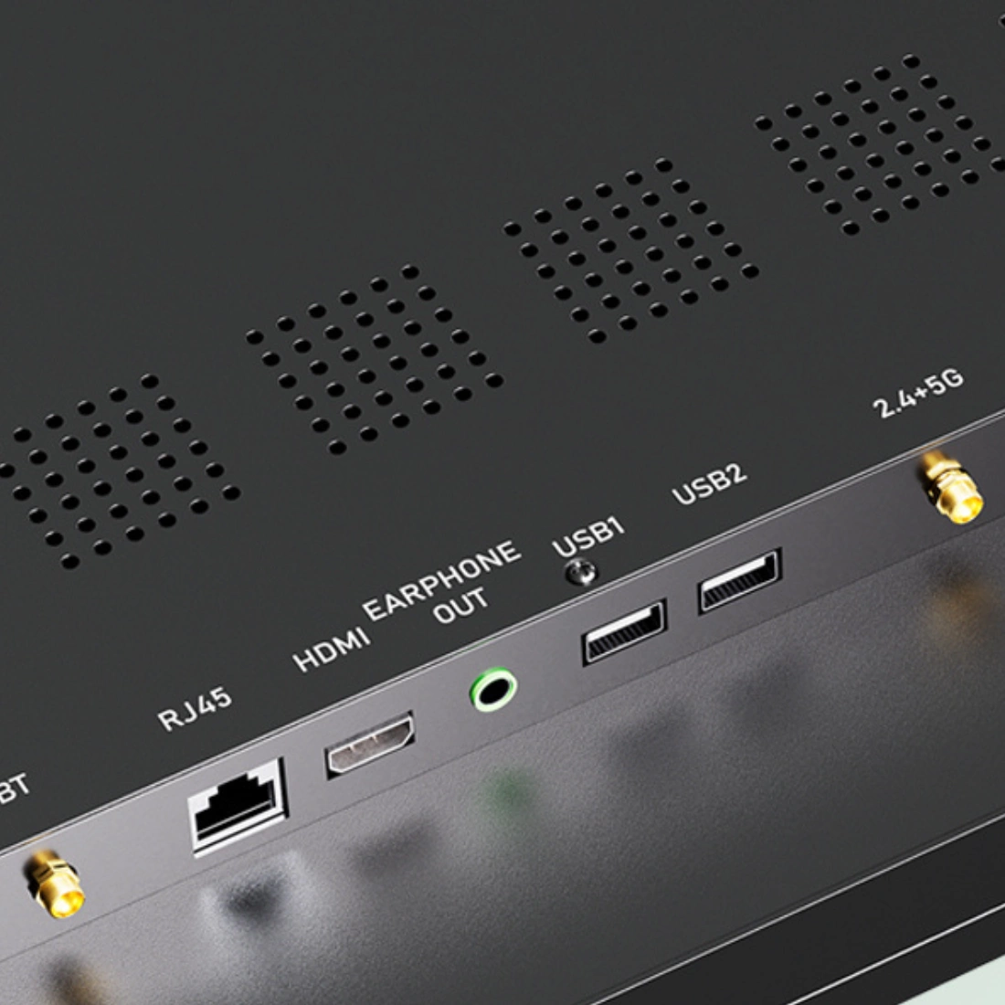Urządzenie wyposażono w złącza, które ułatwiają instalację w systemach komercyjnych. Znajdziesz tutaj USB 3.0, USB OTG, RJ45 oraz porty LAN IN/OUT z obsługą RS-232 i IP Control. Dzięki temu ekran łatwo zintegrujesz z systemami Digital Signage, automatyką budynkową czy sieciowymi narzędziami serwisowymi. Sprzęt jest w pełni przygotowany do pracy w profesjonalnych instalacjach 24/7.