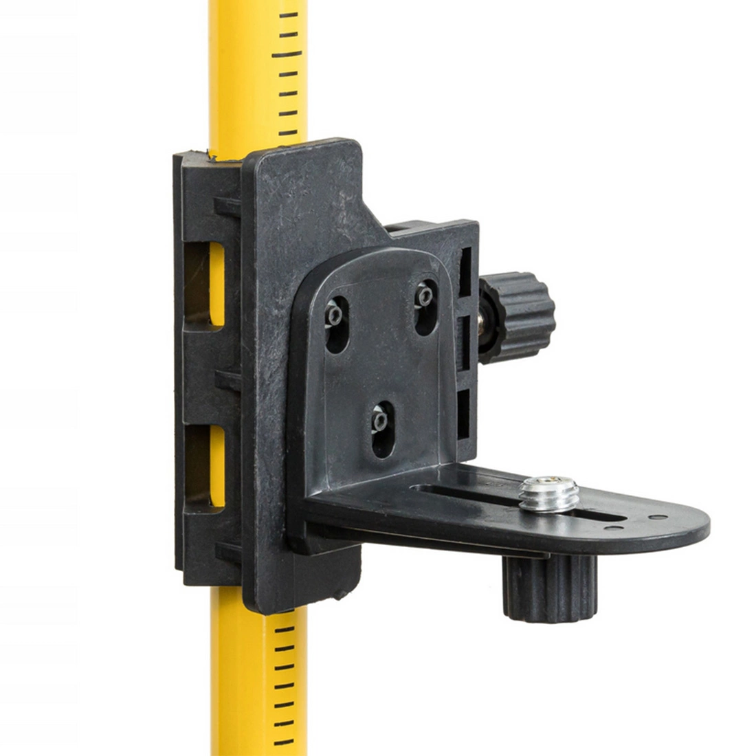Poziomice do tyczki przymocujesz za pomocą specjalnej regulowanej półeczki. Została ona wyposażona w odpowiedni gwint 5/8". Dzięki temu będziesz w stanie z łatwością rozpocząć pracę wraz ze swoją poziomicą laserową. Sama półka jest przyczepiona do statywu za pomocą specjalnej śruby. Możesz ją z łatwością odkręcać i przykręcać za każdym razem, gdy tylko chcesz zmienić wysokość swojego lasera.