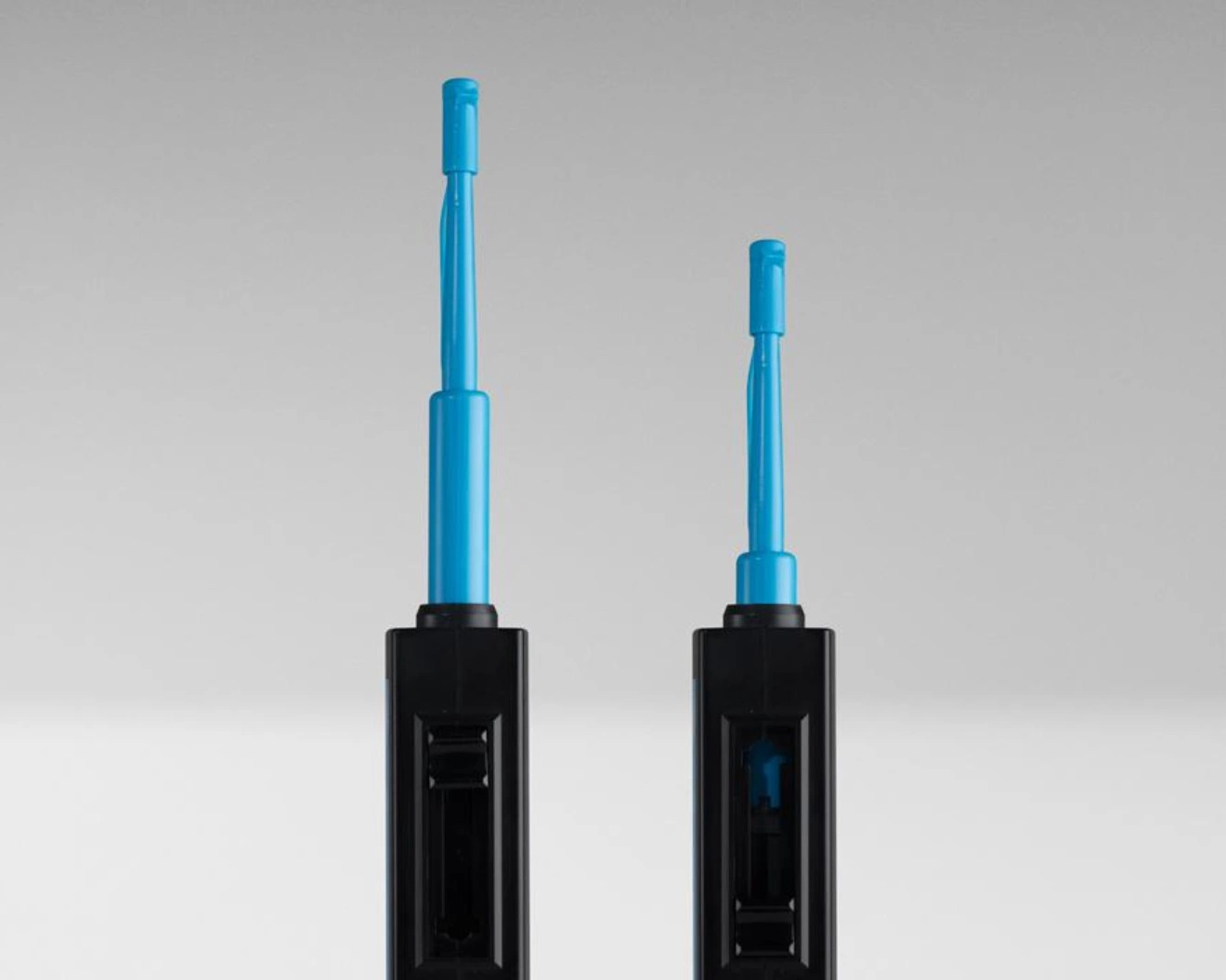 - Podwójna obrotowa końcówka i obsługa jednym naciśnięciem sprawiają, że czyszczenie powierzchni czołowych ferruli jest szybkie i łatwe