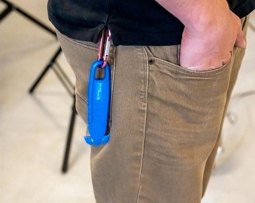 - Duża szlufka do przechowywania na pasku, karabińczyku lub kółku do kluczy