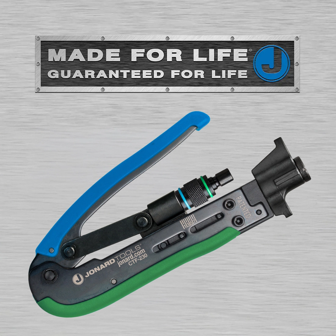 Jak wszystkie narzędzia Jonard Tools, model CTF-230 objęty jest polityką Made For Life®. Producent udziela dożywotniej gwarancji na wykonanie i materiały, więc jeśli coś zawiedzie – narzędzie zostanie naprawione, wymienione albo otrzymasz zwrot kosztów.