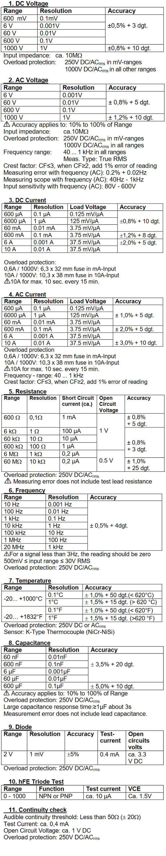 Nowo opracowany woltomierz cyfrowy z automatycznym wyborem zakresu, który charakteryzuje się łatwością obsługi, nowoczesną i poręczną konstrukcją, liczne funkcje pomiarowe oraz interfejs USB do zapisu danych pomiarowych. Ze względu na wysoki standard bezpieczeństwa kategorii przepięcia CAT III 1000 V i dużym cyfrowym wyświetlaczem z podświetleniem i bargrafem 62-segmentowym, urządzenie jest doskonałym rozwiązaniem w dziedzinie edukacji i usług.- 22 mm, 3-cyfrowy wyświetlacz LCD 5/6 (max. 5999) z podświetleniem i 62-segmentowym bargrafem