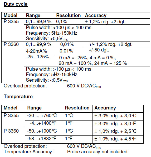 - Akcesoria: przewody pomiarowe, sonda typu K termopara, etui, bateria i instrukcja obsługi