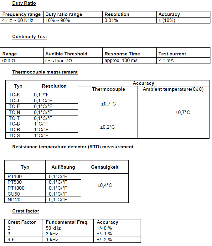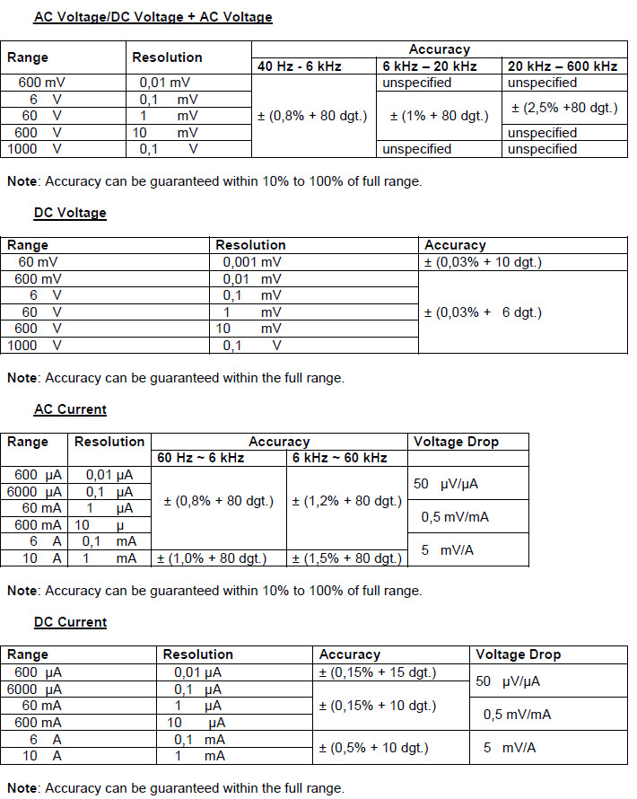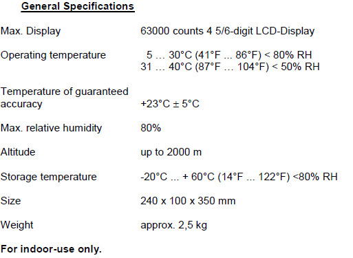 Wysoce precyzyjny laboratoryjny multimetr cyfrowy z interfejsem USB do transferu danych poprzez oprogramowanie PC i funkcją pomiaru wartości True RMS. W zestawie znajduje się oprogramowanie rejestratora danych przeznaczone dla systemów Microsoft Windows. Dodatkowa możliwość przesyłania danych i zdalnego sterowania urządzeniem poprzez RS232, USB, LAN i Bluetooth. Pamięć wewnętrzna i rejestrator danych znajdują się na karcie SD. Pomiar elektrycznych wartości, takich jak napięcie DC/AC, sygnał mieszany DC/AC, a także rezystancja i pojemność. Gniazda bezpieczeństwa 4 mm z przewodami pomiarowymi spełniającymi najnowszą normę. Zakres pomiaru temperatur za pomocą sondy typu K oraz dodatkowo za pomocą sond typu E do S i PT100/1000. Zasilanie kablem zasilającym.