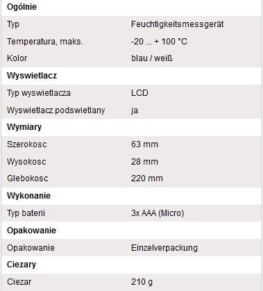 - Temperatura mokrego termometru: 0 - 80 ° C; 0,1 ° C