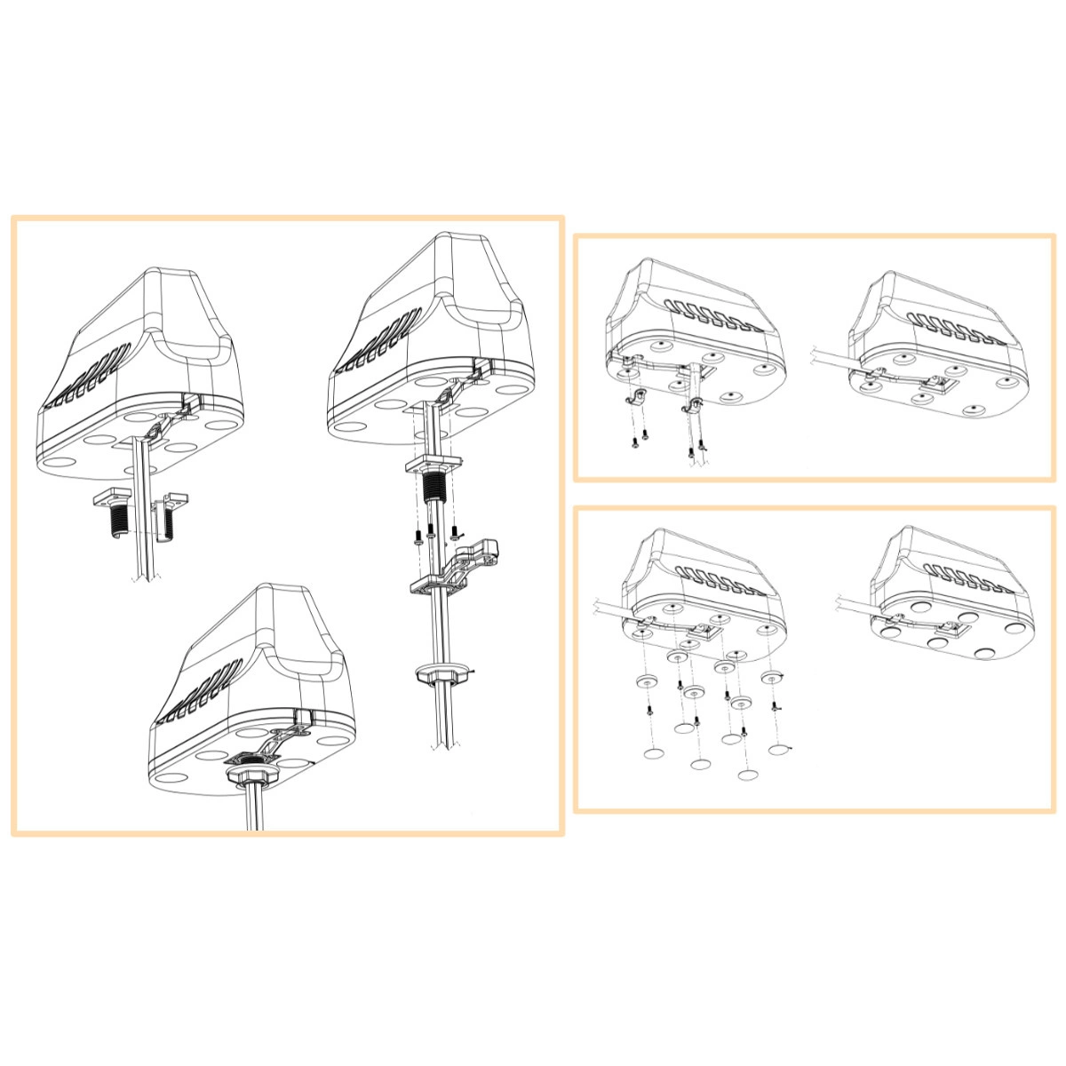 1. Montaż na trzpieniu (Spigot Mount) – dwa gwintowane trzpienie (35 mm i 75 mm) w zestawie, idealne do dachów pojazdów i obudów systemów.