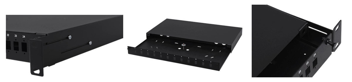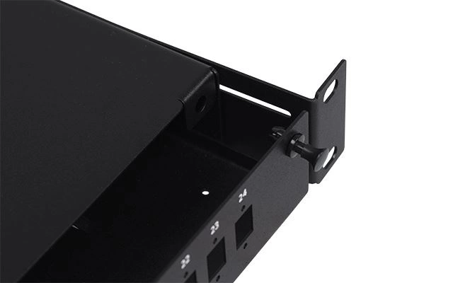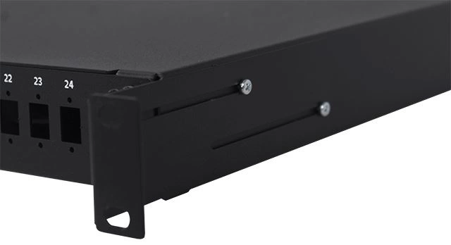 Prosta konstrukcja i nowoczesny projekt, zapewniają wygodę i lekkość użytkowania oraz estetyczny wyglądDedykowane zapinki z obu stron przedniej części przełącznicy, zabezpieczają szufladę przed niekontrolowanym otwarciem. W szufladzie na stałe został zamontowany kołek gwintowany M5 z nakrętką radełkowaną do montażu tacki na spawy. Regulowane, samodzielnie montowane przedłużki z otworami w standardzie RACK, umożliwiają montaż przełącznicy do przednich wsporników w szafach telekomunikacyjnych.