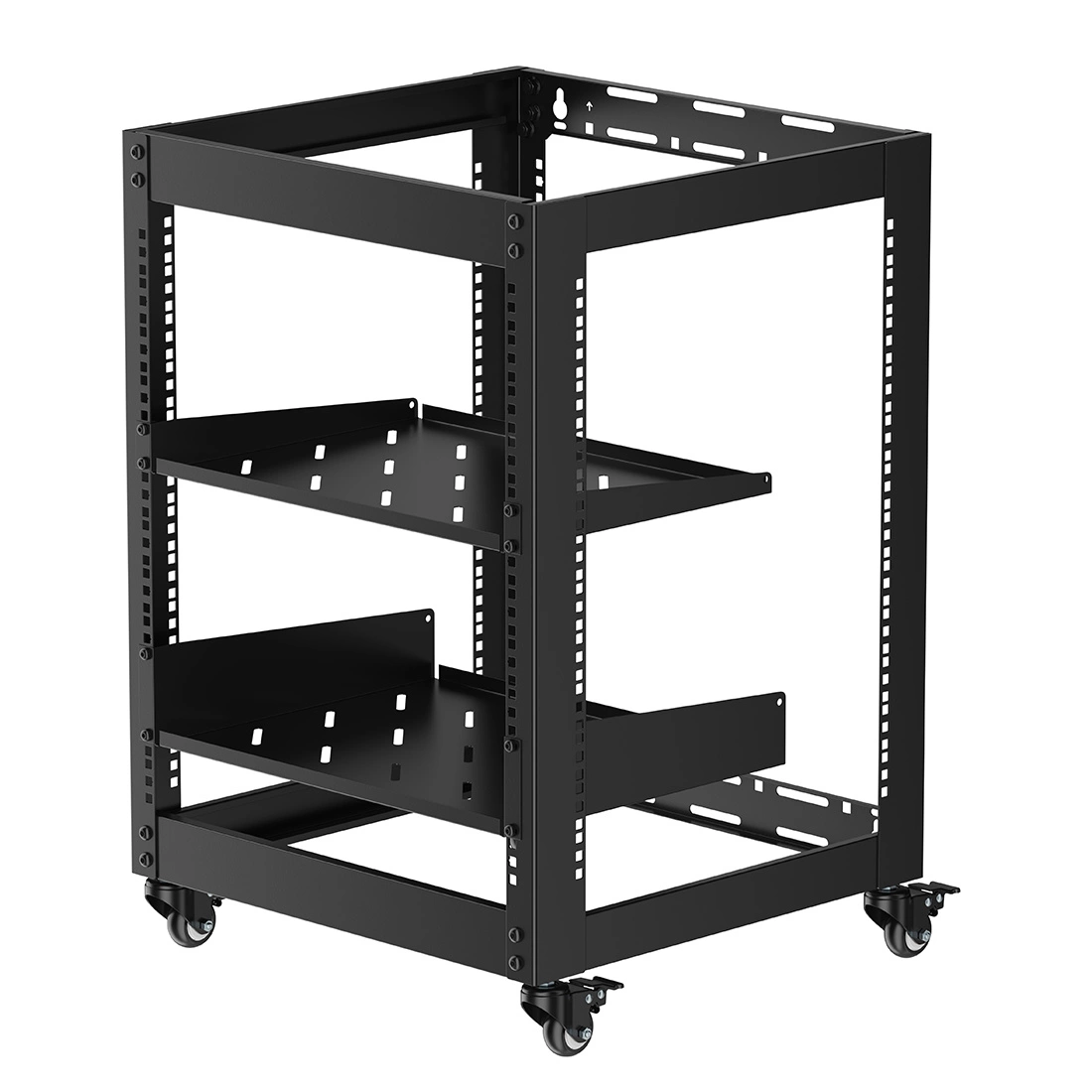 Otwarty stelaż serwerowy 19” Pro-12U to idealne rozwiązanie do przechowywania sprzętu serwerowego i sieciowego w sposób uporządkowany i bezpieczny. Jego solidna konstrukcja z grubością kolumn 2.0 mm zapewnia niezawodność nawet przy dużym obciążeniu. W zestawie znajdują się dwie półki (1U i 2U) oraz 22 zestawy śrub M6 i M8, co umożliwia szybki i stabilny montaż. Stelaż wyposażono także w 4 blokowane kółka, co ułatwia jego przemieszczanie, a otwory montażowe pasują do standardowych ścian drewnianych.