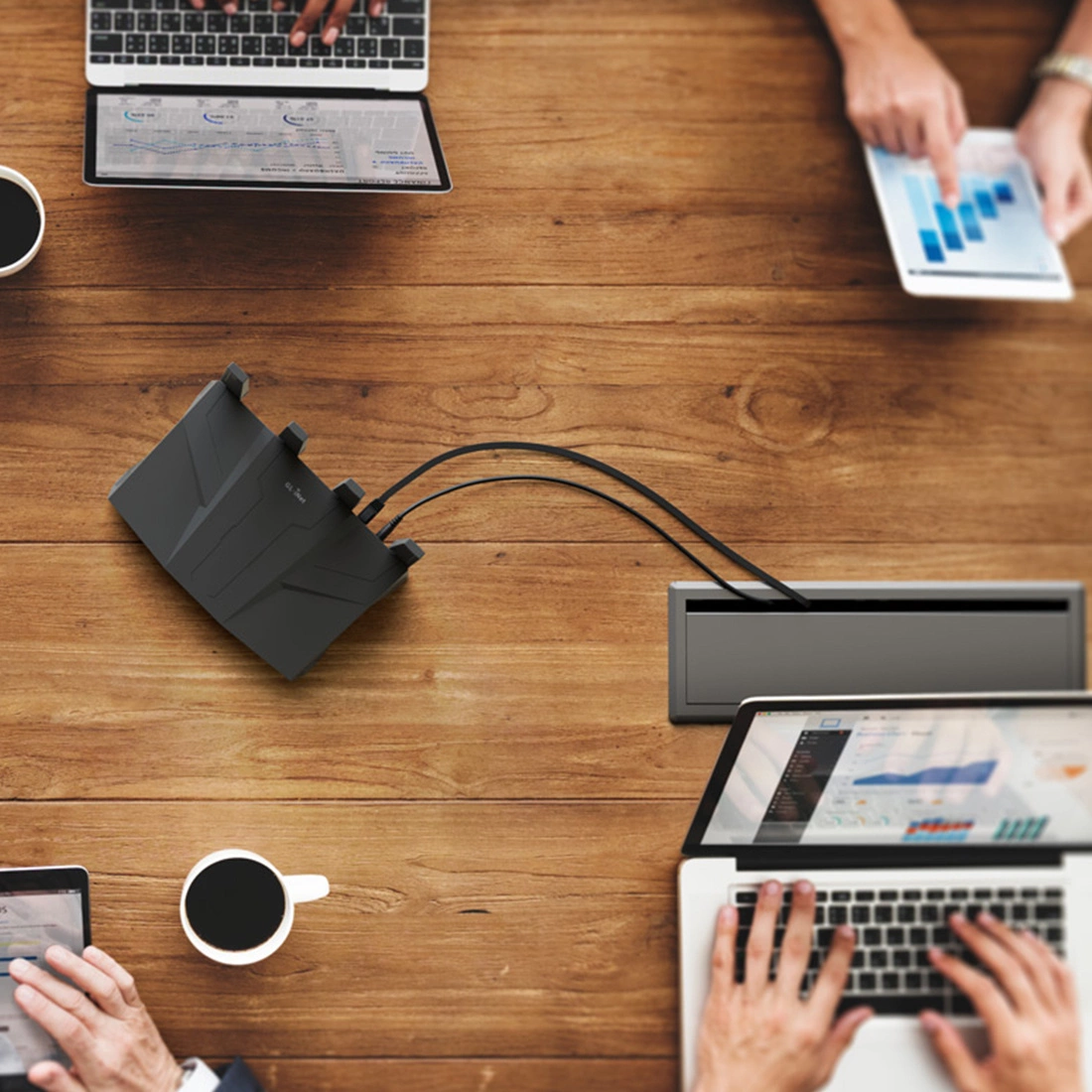 Większość routerów ma maksymalnie 1–2 takie porty. Flint 3 oferuje aż 5 portów 2.5G, więc możesz podłączyć kilka urządzeń na raz – komputer, konsolę, serwer, dekoder – i każde z nich dostanie pełną przepustowość. Bez przełączania kabli, bez kompromisów. Idealne do domu, który działa jak małe centrum danych.