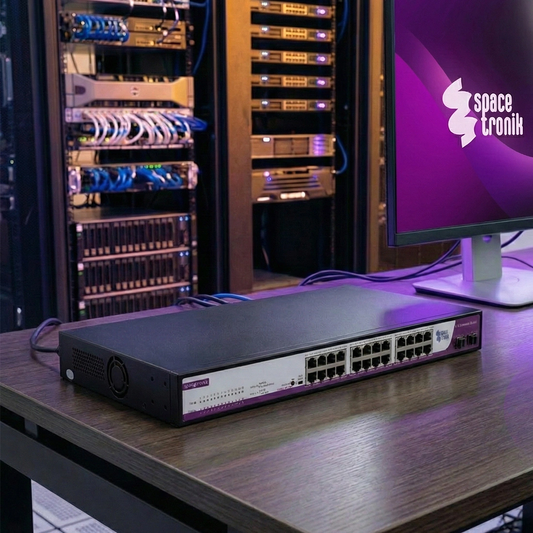 Nowoczesne biuro, serwerownia czy sieć monitoringu IP potrzebują dziś czegoś więcej niż standardowe 1 Gb/s. Spacetronik SP-SGT124S to zaawansowany przełącznik z 24 portami 2.5 G RJ45 oraz 2 uplinkami SFP+ 10 G, który zapewnia stabilne, ultraszybkie połączenia nawet przy dużym obciążeniu. Dzięki wysokiej przepustowości 160 Gb/s i technologii Plug & Play z Auto MDI/MDIX wystarczy podłączyć – i działa. Idealny wybór do środowisk o dużym natężeniu danych, takich jak stacje robocze, punkty Wi-Fi 6/7, NAS-y czy rejestratory NVR.