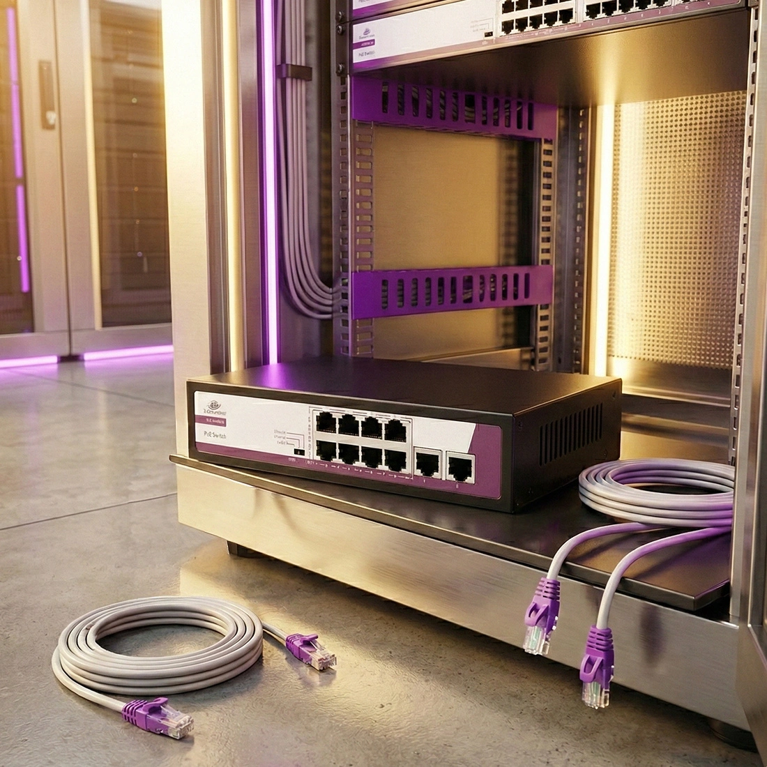 Power over Ethernet (w skrócie PoE) to technologia przesyłania zasilania przez kabel ethernet. Dzięki temu możemy jednocześnie zasilić urządzenie i zapewnić wymianę informacji. Technologia PoE jest szczególnie popularna w przypadku kamer IP, telefonów VoIP, punktów dostępu do internetu (Access Point) i terminali POS. Urządzenia sieciowe wykorzystujące PoE są wygodne w użyciu, przez co są lubiane przez instalatorów. Biorąc na przykład sieć monitoringu - normalnie trzeba by było ciągnąć osobno kabel zasilający i transmisyjny do każdej z kamer. Tutaj możemy wykorzystać switch, który jednocześnie zasili urządzenia, jak i prześle z nich informacje.