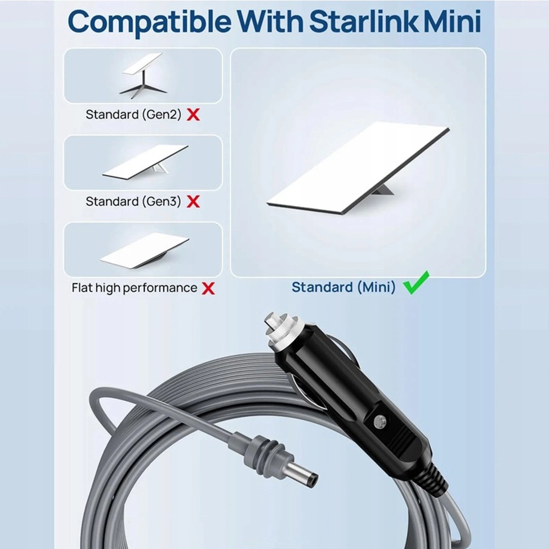 - Zgodność z urządzeniami mobilnymi: Przewód wyposażony w końcówkę DC do zasilania Starlink Mini.
