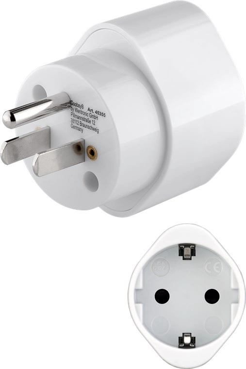 Adapter, przejściówka, pozwala na podłączenie urządzeń z Europy do Amerykańskich lub Japońskich gniazdek.