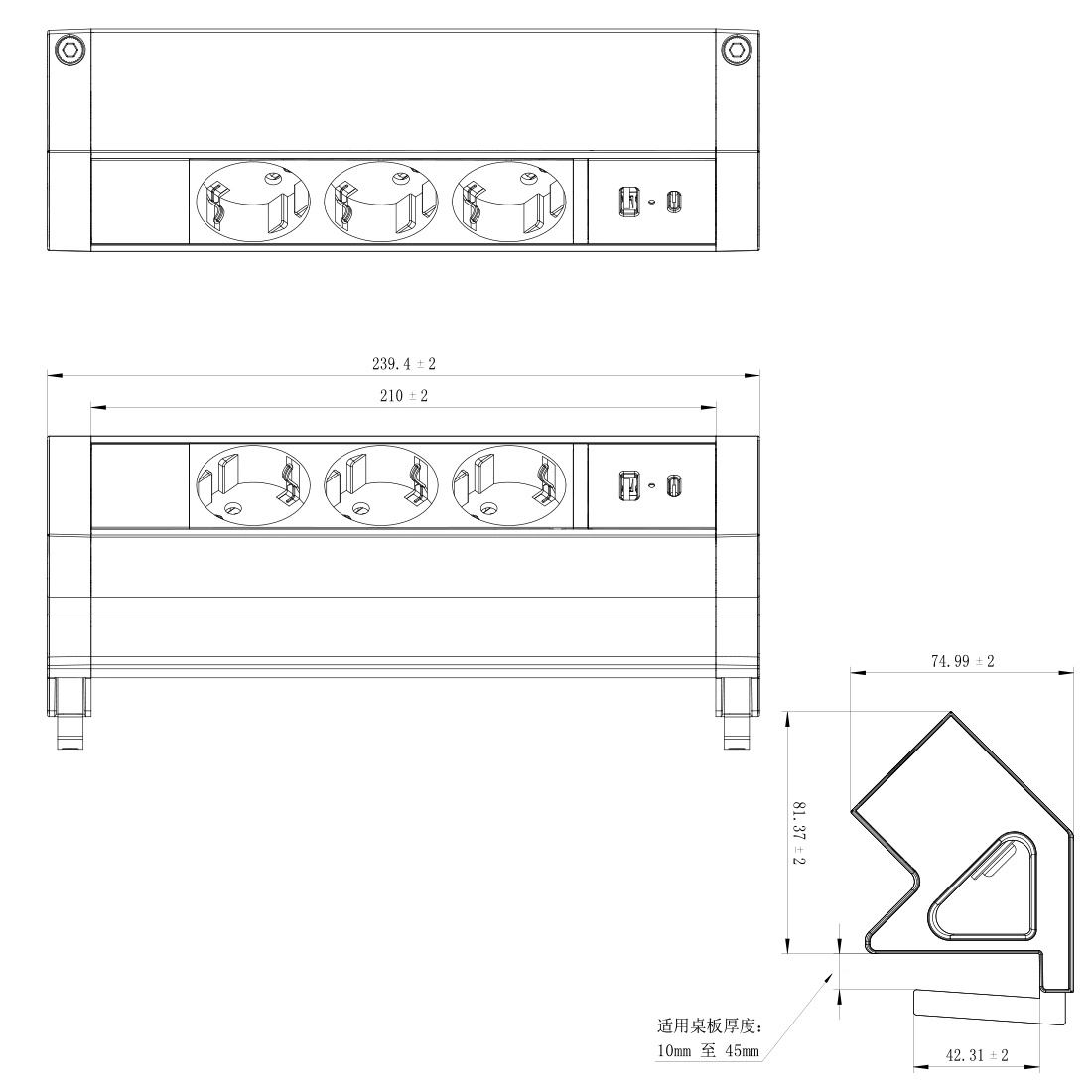 - 240 mm (szerokość) x 82 mm (wys. od blatu) x 75 mm (głębokość) - Grubość blatu:
