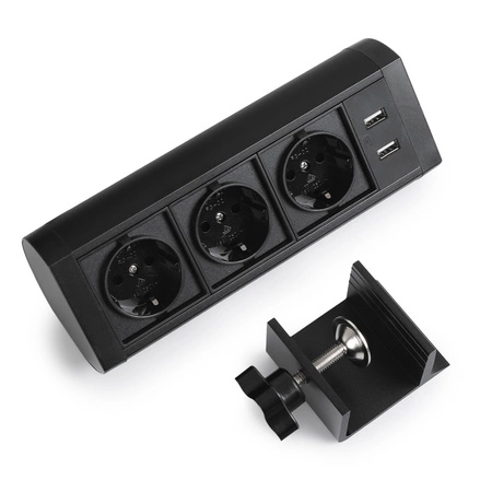 Gniazdo meblowe Spacetronik ERGOLINE SPS-T35B V2 to nowoczesne rozwiązanie, które znajduje zastosowanie w sklepach, salonach sprzedaży, salach konferencyjnych, biurach, a także w domu. Wykonany z aluminium i wysokiej jakości komponentów. Produkt jest przeznaczony do montażu wewnątrz pomieszczeń w biurkach, blatach i stołach, zarówno w pozycji pionowej jak i poziomej, zapewniając dostęp do gniazd. Mediaport został wyposażony w 3 gniazda 110-250 V (typ Schuko) oraz podwójną ładowarkę USB.