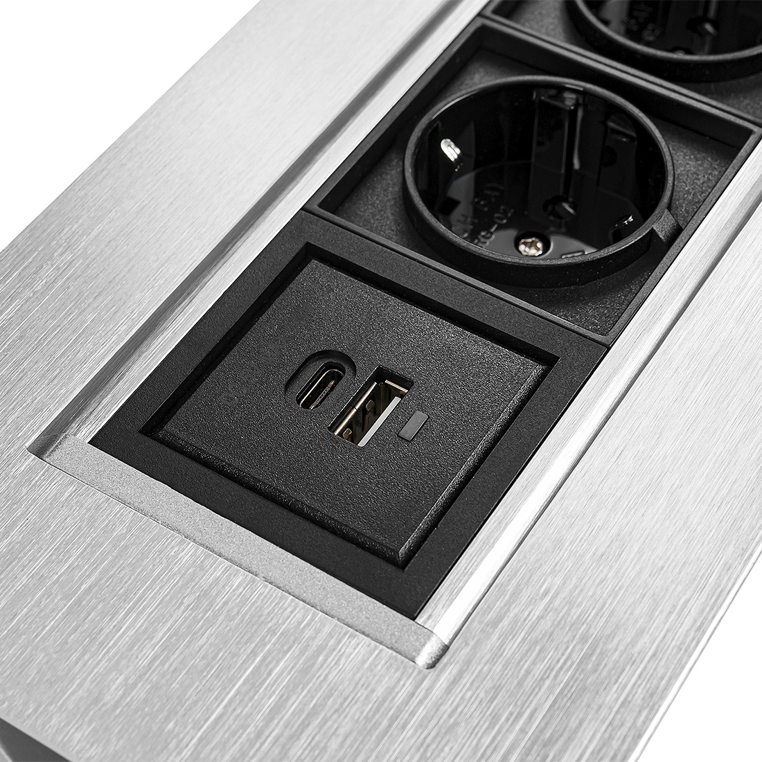 Gniazdo meblowe z wykończeniem w stylu szczotkowanego metalu to połączenie elegancji i wytrzymałości, które doskonale uzupełni nowoczesne wnętrza. Taki wzór nadaje gniazdu luksusowy wygląd, a jednocześnie zapewnia odporność na zarysowania i inne uszkodzenia mechaniczne. Idealne do kuchni, biur czy salonów, gdzie liczy się zarówno funkcjonalność, jak i design.
