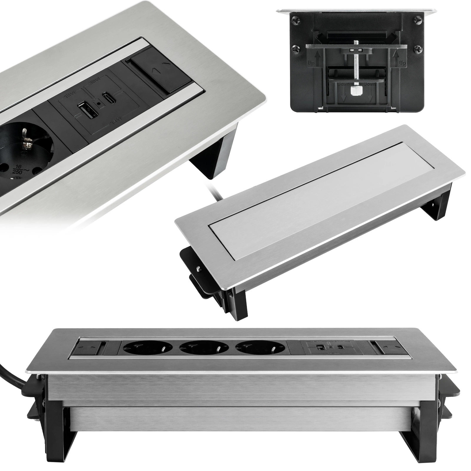 Gniazdo meblowe z wykończeniem w stylu szczotkowanego metalu, eleganckie gniazdo meblowe, trwałe gniazdo w stylu szczotkowanego metalu, nowoczesne gniazdo do mebli