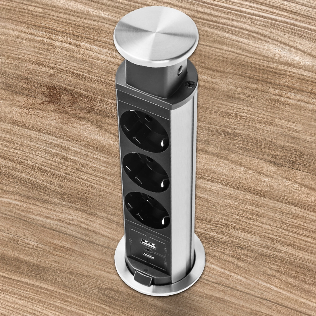 Czy poszukujesz idealnego rozwiązania, które połączy elegancję i funkcjonalność w Twoim biurze, salonie sprzedaży, sali konferencyjnej lub domu? Gniazdo blatowe zasuwane Spacetronik to wszechstronny produkt, który sprosta każdemu wyzwaniu. Dzięki nowoczesnemu designowi i portom ładowania USB i USB-C nasze gniazda meblowe zapewnią wygodę i estetykę w każdej przestrzeni pracy.
