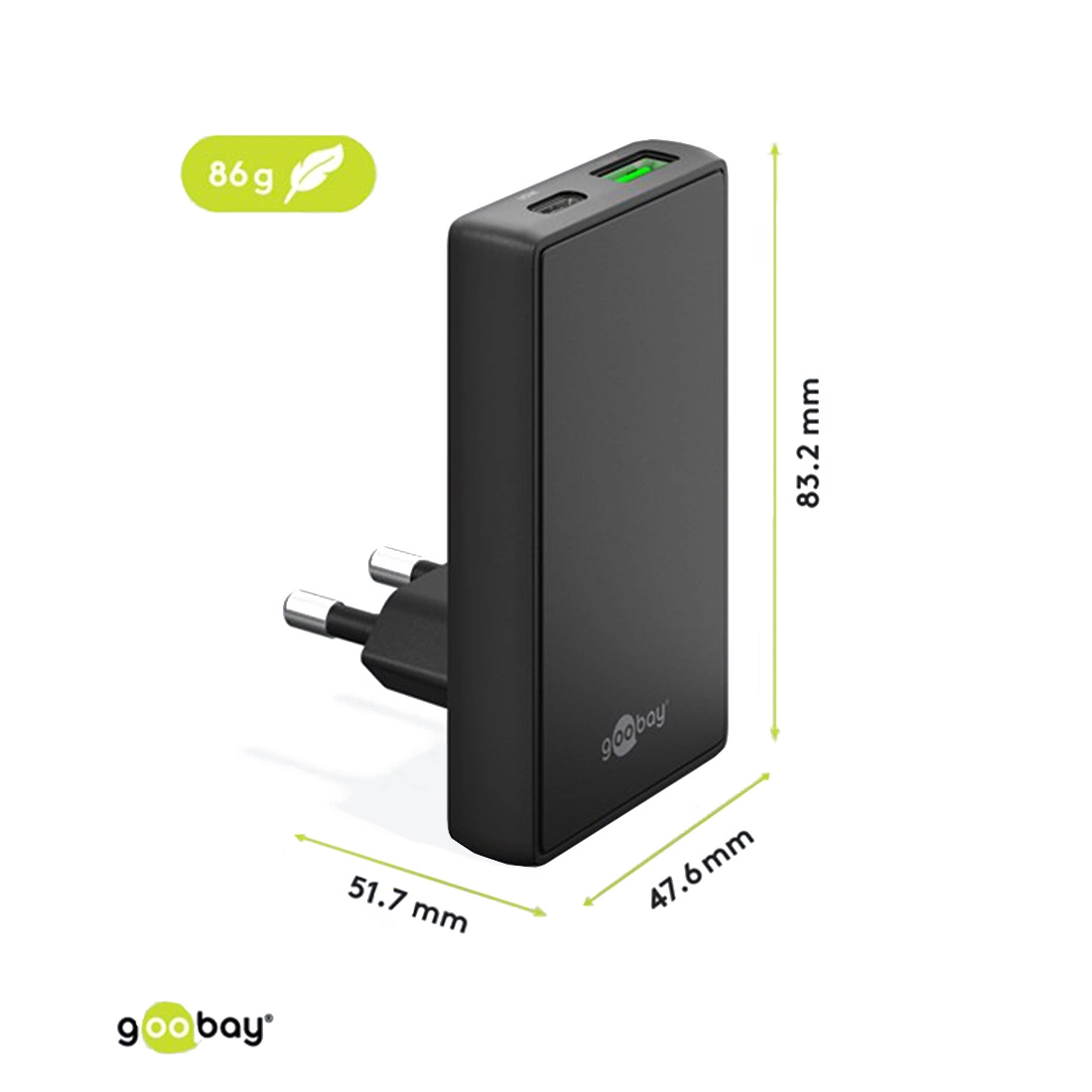 Szybka ładowarka sieciowa GaN 65 W Goobay Vert USB-C PD + USB-A QC - Płaska konstrukcja do zadań specjalnych