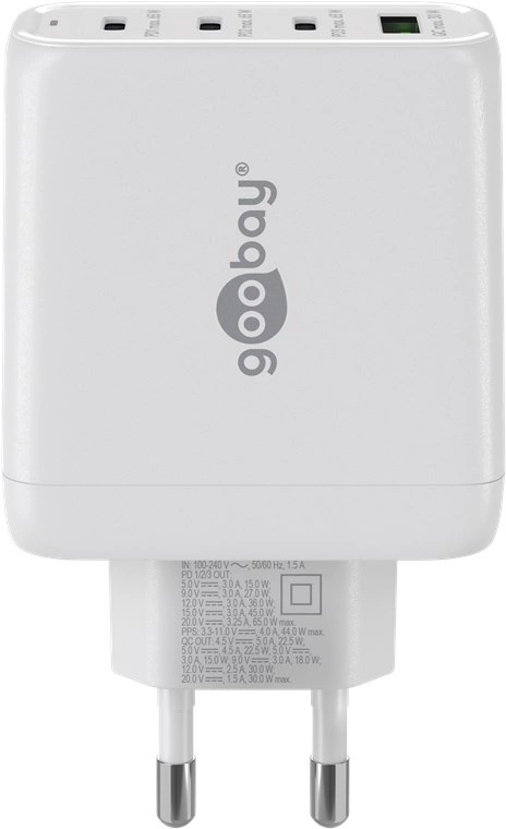 Ładowarka sieciowa Goobay 68W, z portami USB + 3x USB-C, obsługą Quick Charge i Power Delivery