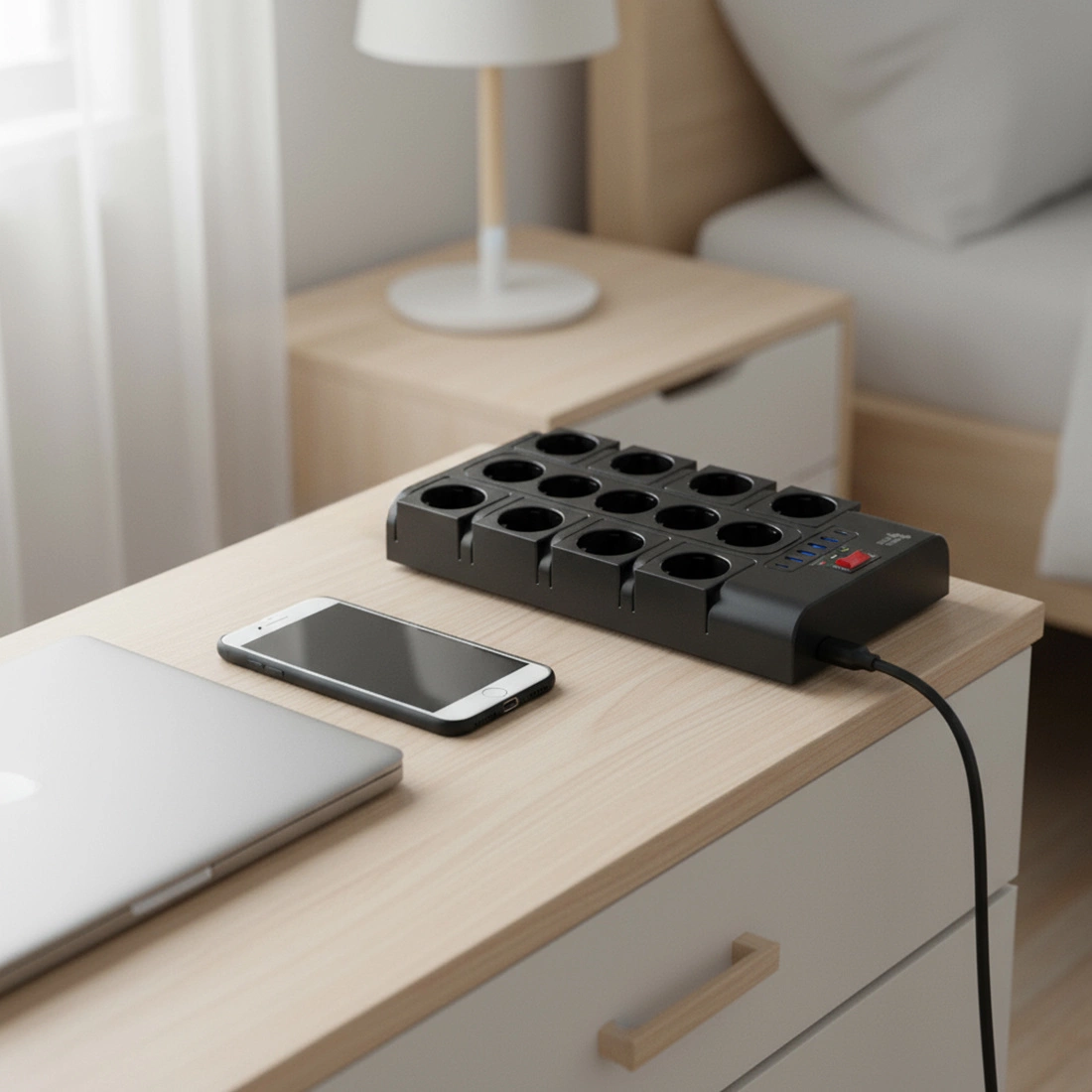 - Ochrona przeciwprzepięciowa 1000J: Bezpieczeństwo urządzeń nawet przy nagłych skokach napięcia.
