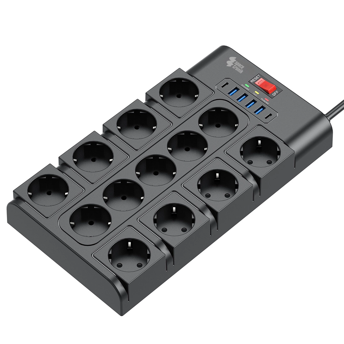 Listwa zasilająca Spacetronik SPSPS04B 13 gniazd AC 4x USB A 2x USB C ochrona przeciwprzepięciowa 3680W