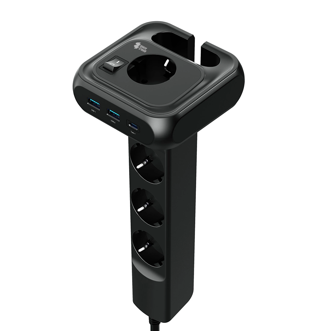 Listwa zasilająca biurkowa Spacetronik SPSPS02B z 4 gniazdami AC, USB-C 20W i 2 USB-A w kolorze czarnym