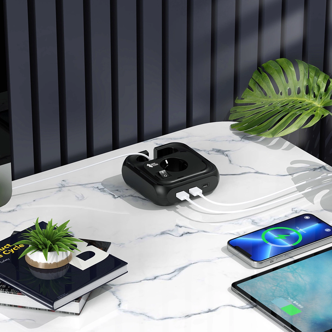 Listwa zasilająca Spacetronik SPSPS02B została stworzona z myślą o nowoczesnych użytkownikach, którzy potrzebują zasilania wielu urządzeń jednocześnie. Dzięki 4 gniazdom AC oraz 3 portom USB, w tym USB-C 20W do szybkiego ładowania, sprawdzi się zarówno w biurze, jak i w domu. Z łatwością obsłuży laptopy, komputery, sprzęt RTV, a także urządzenia mobilne, eliminując problem ograniczonej liczby gniazdek i kabli. To wygodne centrum zasilania, które łączy funkcjonalność z bezpieczeństwem.