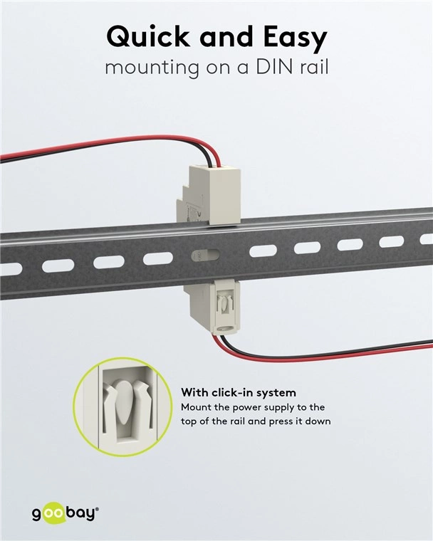- Dzięki szerokości 18 mm jest szczególnie kompaktowy i może być szybko i łatwo zamontowany na szynie DIN z profilem top-hat za pomocą systemu click, np. w szafie sterowniczej.